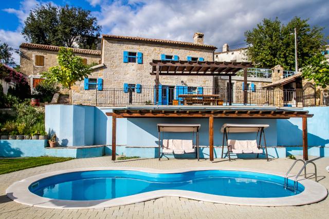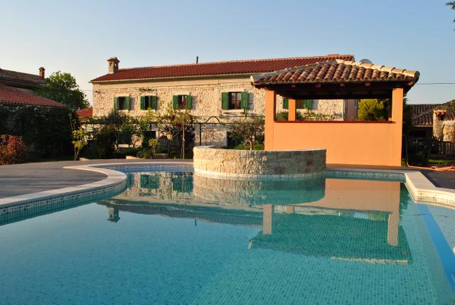 Geschmackvoll umgebaut als eine romantische Villa stellt sie ein echtes Juwel der urspruenglichen Architektur Istriens dar. Alle Raeume sind unterschiedlich ausgestattet, wobei die alten Balken und Holzgewoelbe und sichtbarer origineller Stein beibehalten wurden. Der Charm des alten Hauses vereinigt sich mit den heutzutaegigen Komfortanspruechen.Aus dem Wohnzimmer mit einer grossen Steinterasse br ...