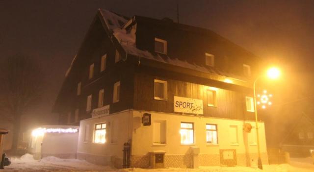 Sport Hotel liegt im ruhigen Teil des Staedtchens Abertamy- im Kern des Erzgebirges und in der Naehe vom GottesgabenBo dar. Die Stadt Abertamy erstreckt sich im Erzgebirge, nicht weit von der Staatsgrenze mit Deutschland cca 7 Km westlich von Jchymov.Skiareal bietet perfekt gepflegte Skipisten, 3 neue viersitzige Seilbahnen, 100% Beschneien, Kinderpark, Skiverleih einschl, Skiservice, Skischule u ...